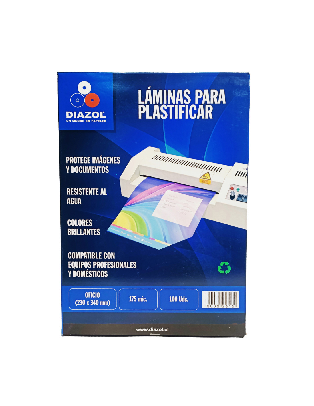 Los Sobres de Termolaminados DIAZOL son láminas de plástico de Alta Calidad, unidas por un extremo, lo que permite que al ser procesadas por una maquina termolaminadora, plastifiquen los documentos ingresados entre ambas caras. Cada lámina cuenta con una relación óptima entre plástico y adhesivo, para evitar rebalse de adhesivo, asegurar la presentación del trabajo terminado y proteger los rodillos de las máquinas que se utilicen.